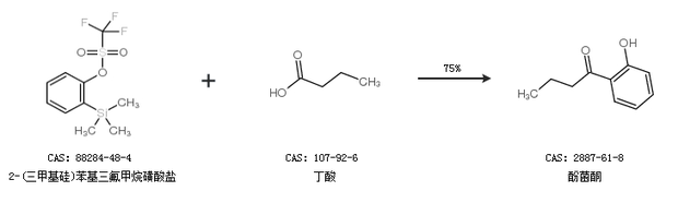 1.通过2-(三甲基硅)苯基三氟甲烷磺酸盐和丁酸合成酚菌酮,收率约75%;
