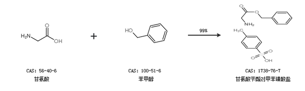 2.通过甘氨酸和苯甲醇合成甘氨酸苄酯对甲苯磺酸盐,收率约99%;
