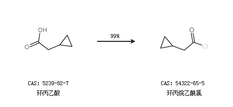 1.通过环丙乙酸合成环丙烷乙酰氯,收率约99%;