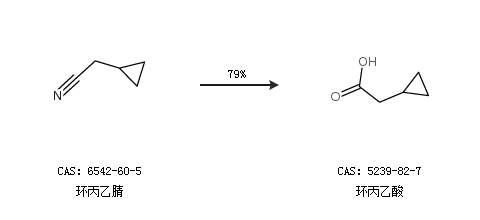 1.通过环丙乙腈合成环丙乙酸,收率约79%;