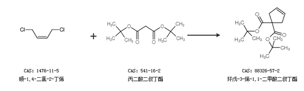 1.通过顺-1,4-二氯-2-丁烯和丙二酸二叔丁酯合成环戊-3-烯-1,1-二甲酸二叔丁酯