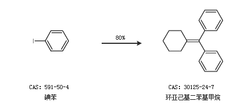 1.通过碘苯合成环亚己基二苯基甲烷,收率约80%;