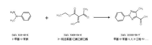 2.通过1-甲基-1-苯肼和2-(羟亚氨基)乙酰乙酸乙酯合成甲基-2-苯基-1,2,3-三唑-5-羧酸