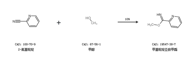 2.通过2-氰基吡啶和甲醇合成甲基吡啶亚胺甲酯,收率约10%;