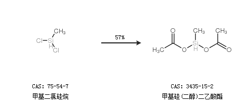 1.通过甲基二氯硅烷合成甲基硅(二醇)二乙酸酯,收率约57%;