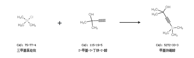 2.通过三甲基氯硅烷和2-甲基-3-丁炔-2-醇合成甲基炔雌醇