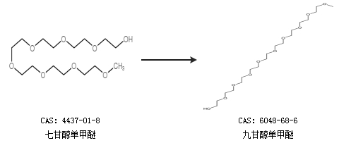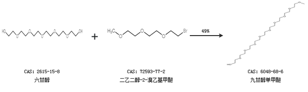 1.通过六甘醇和二乙二醇-2-溴乙基甲醚合成九甘醇单甲醚,收率约49%;