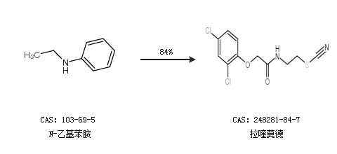 2.通过N-乙基苯胺合成拉喹莫德,收率约84%;