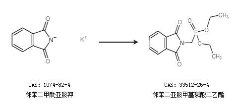 1.通过N-溴甲基邻苯二甲酰亚胺和亚磷酸三乙酯合成邻苯二亚胺甲基磷酸二乙酯,收率约98%;