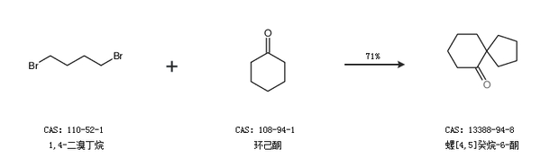 1.通过1,4-二溴丁烷和环己酮合成螺[4,5]癸烷-6-酮,收率约71%;