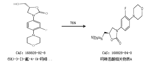 2.通过(5R)-3-[3-氟-4-(4-吗啡啉基)苯基]-5-羟甲基-2-恶唑烷酮合成吗啉恶酮相关物质A,收率约76%;