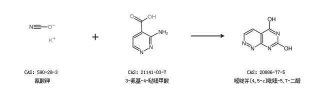 1.通过氰酸钾和3-氨基-4-哒嗪甲酸合成嘧啶并[4,5-c]吡嗪-5,7-二醇