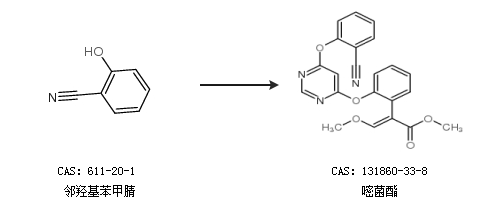 1.通过邻羟基苯甲腈合成嘧菌酯