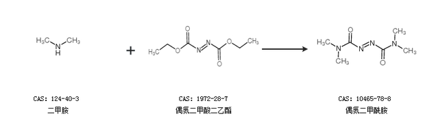 1.通过二甲胺和偶氮二甲酸二乙酯合成偶氮二甲酰胺