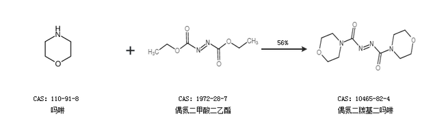 1.通过吗啉和偶氮二甲酸二乙酯合成偶氮二羰基二吗啉,收率约56%;
