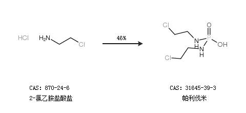 1.通过2-氯乙胺盐酸盐合成帕利伐米,收率约46%;