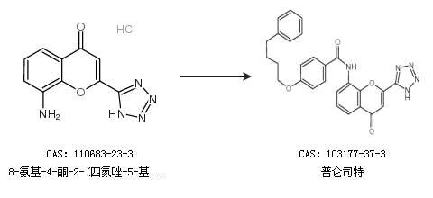中文别名 普伦斯特;4-氧代-8-(4-(4-苯基丁氧基)苯甲酰氨基)-2-(四唑-5-基)-4H-1-苯并吡喃;