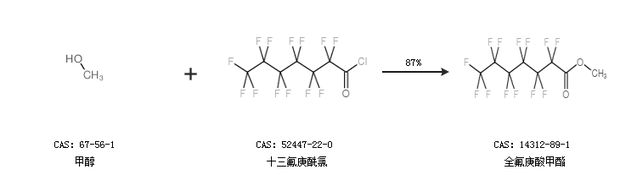 2.通过甲醇和十三氟庚酰氯合成全氟庚酸甲酯,收率约87%;