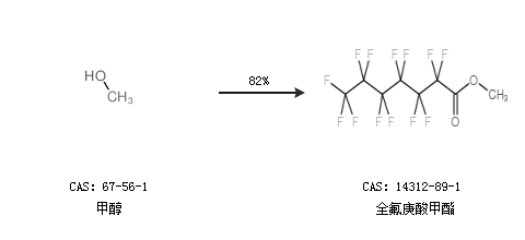 1.通过甲醇合成全氟庚酸甲酯,收率约82%;