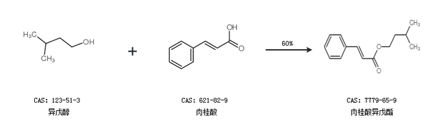 1.通过异戊醇和肉桂酸合成肉桂酸异戊酯,收率约60%;