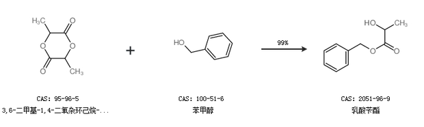 2.通过3,6-二甲基-1,4-二氧杂环己烷-2,5-二酮和苯甲醇合成乳酸苄酯,收率约99%;