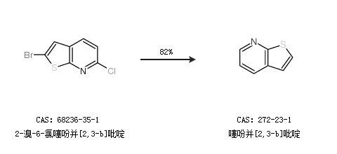 2.通过2-溴-6-氯噻吩并[2,3-b]吡啶合成噻吩并[2,3-b]吡啶,收率约82%;