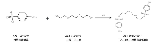 2.通过对甲苯磺酰氯和二缩三乙二醇合成三乙二醇二(对甲苯磺酸酯),收率约4%;