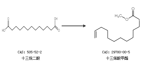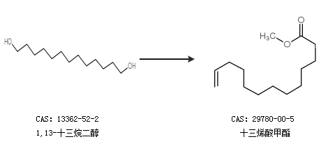 1.通过1,13-十三烷二醇合成十三烯酸甲酯