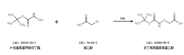 2.通过N-羟基氨基甲酸叔丁酯和溴乙酸合成叔丁氧羰基氨氧基乙酸,收率约59%;