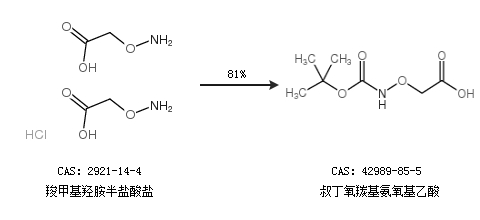 1.通过羧甲基羟胺半盐酸盐合成叔丁氧羰基氨氧基乙酸,收率约81%;