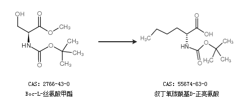 2.通过Boc-L-丝氨酸甲酯合成叔丁氧羰酰基D-正亮氨酸