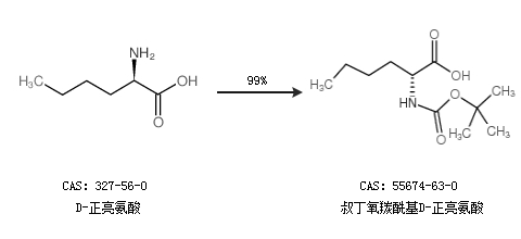 1.通过D-正亮氨酸合成叔丁氧羰酰基D-正亮氨酸,收率约99%;