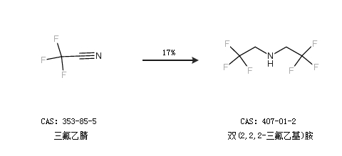 1.通过三氟乙腈合成双(2,2,2-三氟乙基)胺,收率约17%;