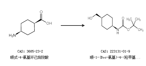 1.通过顺式-4-氨基环己烷羧酸合成顺-1-(Boc-氨基)-4-(羟甲基)环己烷