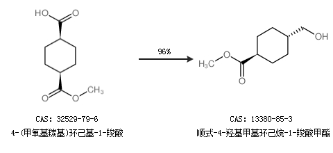 1.通过4-(甲氧基羰基)环己基-1-羧酸合成顺式-4-羟基甲基环己烷-1-羧酸甲酯,收率约96%;
