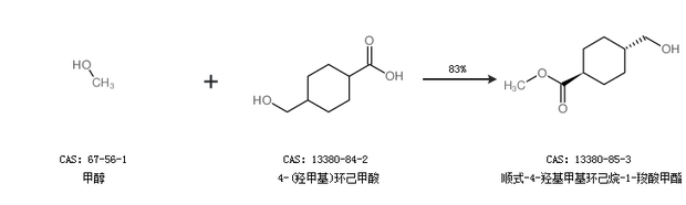 2.通过甲醇和4-(羟甲基)环己甲酸合成顺式-4-羟基甲基环己烷-1-羧酸甲酯,收率约83%;