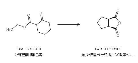 2.通过2-环己酮甲酸乙酯合成顺式-四氢-1H-环戊并[c]呋喃-1,3(3aH)-二酮