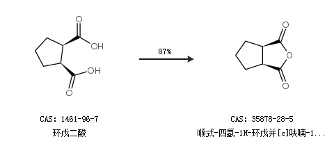 1.通过环戊二酸合成顺式-四氢-1H-环戊并[c]呋喃-1,3(3aH)-二酮,收率约87%;