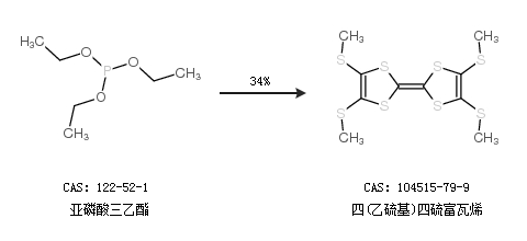 1.通过亚磷酸三乙酯合成四(乙硫基)四硫富瓦烯,收率约34%;