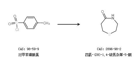 2.通过对甲苯磺酰氯合成四氢-(2H)-1,4-硫氮杂革-5-酮
