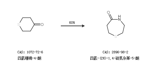 1.通过四氢噻喃-4-酮合成四氢-(2H)-1,4-硫氮杂革-5-酮,收率约60%;