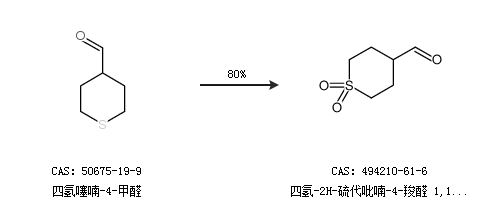 1.通过四氢噻喃-4-甲醛合成四氢-2H-硫代吡喃-4-羧醛 1,1-二氧化物,收率约80%;
