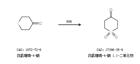 1.通过四氢噻喃-4-酮合成四氢噻喃-4-酮 1,1-二氧化物,收率约89%;