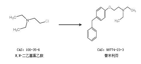 2.通过N,N-二乙基氯乙胺合成替米利芬