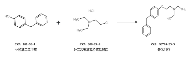 1.通过4-羟基二苯甲烷和2-二乙氨基氯乙烷盐酸盐合成替米利芬