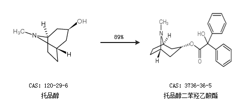 2.通过托品醇合成托品醇二苯羟乙酸酯,收率约89%;