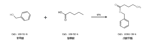 2.通过苯甲醇和缬草酸合成戊酸苄酯,收率约97%;