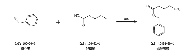 1.通过溴化苄和缬草酸合成戊酸苄酯,收率约48%;