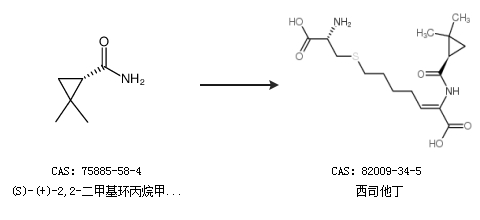 2.通过(S)-(+)-2,2-二甲基环丙烷甲酰胺合成西司他丁