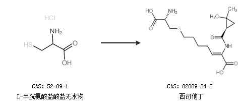 中文别名 [R-[R^^,S^^(Z)]]-7-[(2-氨基-2-羧基乙基)硫]-2-[[(2,2-二甲基环丙基)羰基]氨基]-2-庚烯酸;(Z)-7-[(2S)-2-氨基-3-羟基-3-氧代丙基]硫-2-[[(1S)-2,2-二甲基环丙甲酰]氨基]庚-2-烯酸;